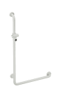 Med denne løsning fra Hewi, som minder om et L, får du en elegant og funktionel løsning til dit brusebad. Ved montering kan du justere, om den horisontelle stang skal være til venstre eller højre. Den lodrette stang har desuden en ergonomisk udformet, justerbar holder til din håndbruser.
