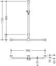 Hewi 801 T støttegreb/brusestang, 118,4x125 cm,mat lysegrå