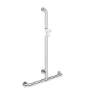 Med denne løsning fra Hewi, som minder om et omvendt T, får du en elegant og funktionel løsning til dit brusebad. Ved montering kan du justere, hvor på den vandrette stang den lodrette stang skal placeres. Den lodrette stang har desuden en ergonomisk udformet, justerbar holder til din håndbruser.