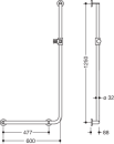 Med denne løsning fra Hewi, som minder om et L, får du en elegant og funktionel løsning til dit brusebad. Den lodrette stang har en ergonomisk udformet, justerbar holder til din håndbruser.