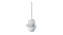 Børstehåndtaget er fremstillet i robust polyamid og udstyret med et udskifteligt børstehoved, så du let kan forny sættet, når behovet opstår. Den buede børstepotte med delvist åben top sikrer nem adgang, og potten kan både tages af for rengøring eller monteres med skjult tyverisikring. Hele sættet er udført i højglanspolyamid i hvid, som ikke bare ser flot ud, men også er let at holde rent – selv når hverdagen går stærkt. Overdelen er udført i gennemsigtig plast i hvid farve, hvilket fuldender det elegante udtryk.