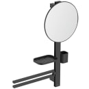 Her får du en hylde, et tandkrus og en dobbelt håndklædestang, som alle tre kan flyttes og placeres til det ønskede sted på stangen. Øverst på stangen sidder et spejl på 32,8 cm i diameter, som også kan flyttes, så det passer perfekt til din højde.