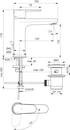 Denne model har 122 mm op til den del af tuden, hvor vandet kommer ud, hvilket giver god plads og komfort ved håndvasken. Den leveres med en metalbundventil, der styres af et håndtag.