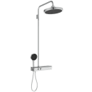 Dette stilrene og moderne brusesystem kombinerer funktionalitet og æstetik med en termostatfunktion, der sikrer stabil vandtemperatur og maksimal komfort. Med en stor hovedbruser og en praktisk håndbruser får du fleksibilitet og luksus i hverdagen.