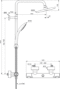 Sættet består af:- Brusearmatur med termostat og pindegreb