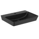 Ideal Standard Connect Air håndvask i sort til montering på væg, i flot kantet design der sætter stilen på badeværelset. Vasken har hanehul og overløb.