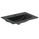 Ideal Standard Connect Air håndvask i sort til vægmontering eller montering på underskab, i flot design med runde former, der sætter stilen på badeværelset. Vasken har hanehul og overløb. Vasken passer til Tesi underskabet fra Ideal Standard.