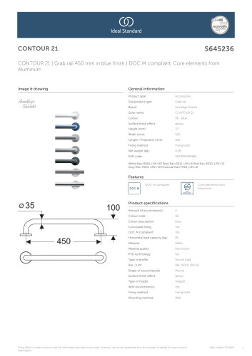 Dette støttegreb fra Ideal Standards Contour 21 serie er designet til at give ekstra støtte og stabilitet i badeværelset.