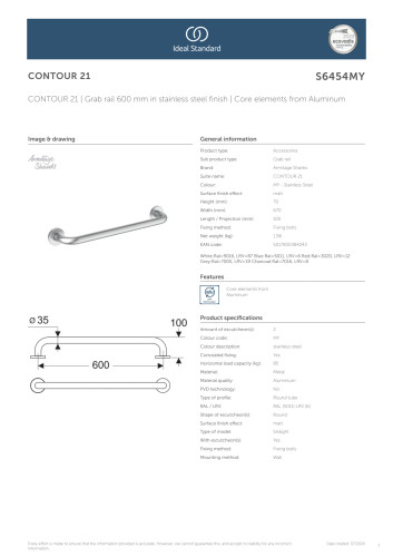 Dette støttegreb fra Ideal Standards Contour 21 serie er designet til at give ekstra støtte og stabilitet i badeværelset.