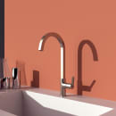 Armaturets kantede C-tud giver dig et godt arbejdsrum over vasken, som understøttes af den 360° svingbare tud, der gør det muligt at fylde en gryde på køkkenbordet, mens du benytter køkkenvasken.