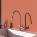Armaturets lange C-tud giver dig et godt arbejdsrum over vasken, som understøttes af den 360° svingbare tud, der gør det muligt at fylde en gryde på køkkenbordet, mens du benytter køkkenvasken.