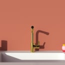 Gusto armaturet er i en smuk børstet guld farve, som efterfølgende har fået en PVD overfladebehandling, der giver armaturet er særligt stærk og beskyttende overflade. Ligesom det også forhindrer armaturet