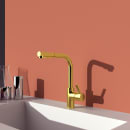 Et smukt køkkenarmatur i børstet guld med PVD overflade