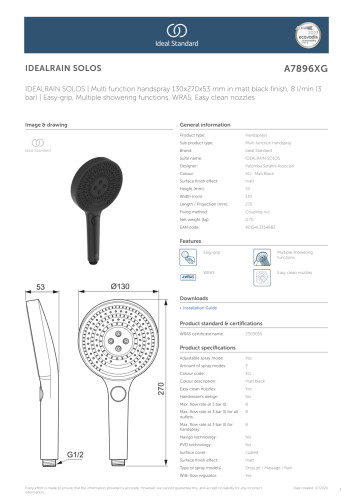 Med sit ergonomiske easy-grip håndtag er Idealrain Solos designet til at gøre dit badeværelse mere funktionelt. De rengøringsvenlige dyser sikrer, at bruseren altid er klar til brug, og den robuste kromoverflade holder sig pæn over tid.