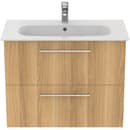 Det rummelige vaskeskab fra Ideal standard er i en flot og moderne lys eg med tydelige årer fra træet, som komplimenteres af de to medfølgende krom greb.