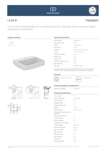 VÊlg Ideal Standard i.life B hÄndvask for et moderne, hygiejnisk og funktionelt badevÊrelsesdesign. Perfekt til dig, der Þnsker en elegant og praktisk lÞsning til daglig brug.