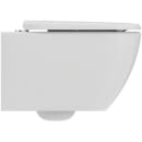 Specialmodellen fra Ideal Standard indstiller stilen i dit badeværelse. De glatte ydre overflader gør det nemt at holde toilettet rent. Inde i toilettet er der en åben skyllekant, såkaldt kantløst design, der gør det lettere at rengøre og sværere for snavs, bakterier og kalk at sætte sig. Den leveres med et toiletsæde i en moderne wrap-over model.