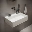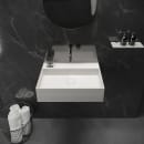Håndvaskens design uden hanehul giver dig frihed til at vælge et væghængt armatur eller bore et hanehul med et kopbor, hvis det foretrækkes. For et sømløst look, er håndvasken ekskluderet overløb.