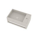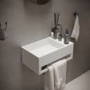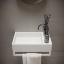 Med den integrerede håndklædeholder og afsætningspladsen til højre, kan du altid opbevare nødvendige badeværelsesratikler, som håndsæben, indenfor rækkevide.