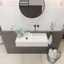 Håndvasken er vendbar, og du bestemmer derfor selv, om du vil have afsætningspladsen på venstre eller højre.