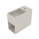 Den integrerede hylde giver dig praktisk opbevaring, og det vendbare design gør det nemt at tilpasse vasken til dine behov, uanset om du ønsker hanehullet til højre eller venstre.
