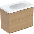 Stilrent badeværelsesmøbel i eg med rummelige skuffer og rengøringsvenlig håndvask