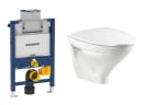Toiletpakke med væghængt toilet, toiletsæde og indbygningscisterne. Betjeningspladen skal bestilles seperat og med denne har du de nødvendige dele der skal anvendes ved montering af væghængt toilet.