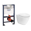 Komplet toiletpakke med moderne og tidsløs hængeskål, toiletsæde, betjeningsplade og indbygningscisterne. Pakken indeholder de nødvendige dele der skal anvendes ved montering af væghængt toilet.