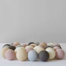En af vores nye Iris Lights lyskæder med farvede kugler - her med fine grå nuancer blandet med en creme kugle og støvet lyserød,