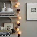 En af vores nye Iris Lights lyskæder med farvede kugler - her med fine grå nuancer blandet med en creme kugle og støvet lyserød, hvilket giver lyskæden et enkelt og rolig look at kigge på, og så passer den til både det stilrene og farverige hjem. Boldene sidder 2 og 2 med 14 cm imellem. 20 bolde fordelt på 140 cm kæde-20 LED dioder 35 bolde fordelt på 240 cm kæde- 35 LED dioder