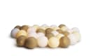 Masser af smukke kugler med lys i hyggelige sandfarver. Giver det dejligt lys og er en af vores bedst solgte lyskæder. Boldene sidder 2 og 2 med 14 cm imellem. 20 bolde fordelt på 140 cm kæde-20 LED dioder 35 bolde fordelt på 240 cm kæde- 35 LED dioder