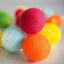 Er du til masser af friske glade farver i stil med billedet er det denne lyskæde du skal vælge. Samtidig giver den et dejligt lys. Boldene sidder 2 og 2 med 14 cm imellem. 20 bolde fordelt på 140 cm kæde-20 LED dioder 35 bolde fordelt på 240 cm kæde- 35 LED dioder