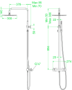 Justerbar højde på hovedbruseren og justerbart vægbeslag