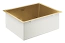 Den firkantede form og den varme messingfarve giver vasken et tidløst udtryk, der passer ind i både klassiske og moderne køkkener. Den store kumme gør det nemt at håndtere både daglig opvask og større køkkenprojekter. Med en solid materialetykkelse får du en vask, der holder til hverdagens slid.