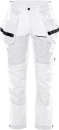 Kansas Evolve håndværkerbukser i hvid er skabt til dig, der ønsker maksimal bevægelsesfrihed og komfort gennem hele arbejdsdagen. Bukserne er designet med fuld 4-vejs stretch – både foran, bagpå og ned langs benene – så du kan bevæge dig frit, uanset om du arbejder på knæ, kravler eller står oprejst.