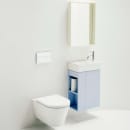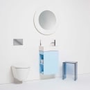 Det unikke skjulte afløb bidrager til det enkle look. Vasken kan monteres på væggen eller kombineres med et underskab fra Kartell Laufen-serien.