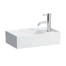 Denne håndvask af Kartell Laufen er højrevendt og perfekt til mindre badeværelser. Der er blevet brugt det ultrastærke saphirkeramik som gør det muligt at kanterne er meget tynde, og derfor får du et bredt bassin trods den mindre størrelse af selve håndvasken. Du optimerer altså din egen bevægelighed på både badeværelset og håndvasken.