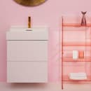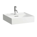 Håndvaskens tynde kanter skaber lethed og den enkle form gør den minimalistisk. De tynde kanter lader sig gøre med Laufens ultrastærke SaphirKeramik, som er en særligt formbar og stærk keramik.