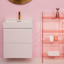 Håndvaskens tynde kanter skaber lethed og den enkle form gør den minimalistisk. De tynde kanter lader sig gøre med Laufens ultrastærke SaphirKeramik, som er en særligt formbar og stærk keramik.