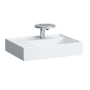 Håndvaskens tynde kanter skaber lethed og den enkle form gør den minimalistisk. De tynde kanter lader sig gøre med Laufens ultrastærke SaphirKeramik, som er en særligt formbar og stærk keramik. Du vil derudover også få meget afsætningsplads til venstre, hvor du kan sætte badeværelsesartikler eller andet.