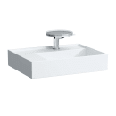 Håndvaskens tynde kanter skaber lethed og den enkle form gør den minimalistisk. De tynde kanter lader sig gøre med Laufens ultrastærke SaphirKeramik, som er en særligt formbar og stærk keramik. Du vil derudover også få meget afsætningsplads til venstre, hvor du kan sætte badeværelsesartikler eller andet.