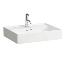 Håndvaskens tynde kanter skaber lethed og den enkle form gør den minimalistisk. De tynde kanter lader sig gøre med Laufens ultrastærke SaphirKeramik, som er en særligt formbar og stærk keramik. Derudover så får du afsætningsplads på begge sider af hanehullet