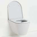 Det væghængte toilet i stilrent design kombinerer bløde linjer med lige kanter. Hele toilettets yderside er glat, så det er nemt at tørre over ved rengøring.