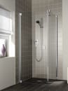 Med en Raya bruseløsning fra Kermi får du en æstetisk løsning. Profilerne i anodiseret aluminium står i en flot, mat sølvfarvet finish, og de lige stilrene linjer og ergonomisk udformede greb bidrager til det enkle og flotte design.