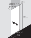 OBS! Dørens/væggens bredde er angivet som det mindst mulige mål. Den justerbare bredde finder du under specifikationer. Her angives det ekstra antal cm, som bredden kan udvides med. Justeringen foretages i profilen.
