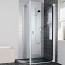 Bemærk! Brusedøren kan anvendes til bruseniche eller i kombination med en fast væg (model TWD), hvis man ønsker at skabe en hjørneløsning. Vælg fx mellem forskellige størrelser på brusedøren og den faste væg, for at tilpasse løsningen til netop dit behov.