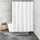 Hvidt badeforhæng med diskrete striber til et roligt bademiljø