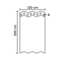 Badeforhænget er OEKO-TEX Standard 100-certificeret og fri for skadelige stoffer. Det tåler maskinvask ved 40°C på skåneprogram, så du nemt kan holde det friskt. Forhænget passer til både bruseafskærmning og badekar, og de robuste ophængsøjer gør det let at montere. OBS: Ophængsringe skal tilkøbes separat.