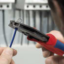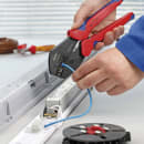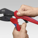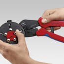 Multicrimptangen fra Knipex har et rundt magasin med 5 forskellige indsatser, så tangen passer til lige præcis dit kabel. Det kræver ikke værktøj at skifte mellem indsatserne.