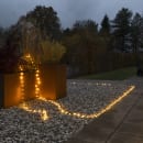 Lyskæden er IP44-klassificeret og derfor velegnet til udendørs brug i både regn og sne. Transformeren (IP20) skal dog placeres tørt. Det gør lyskæden ideel til fast dekoration i haven, på altanen eller ved indgangspartiet hele året.
